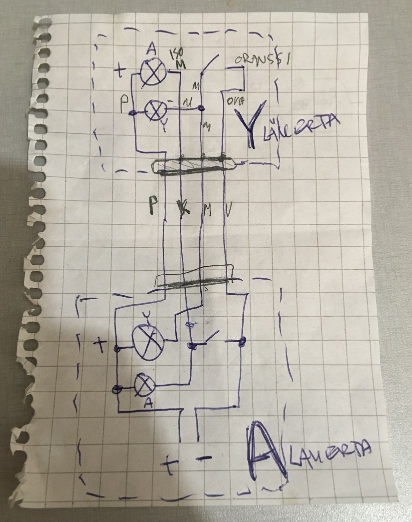 Alakerrasta merkkivaloa saa vilkutettua tai pysymään kokoajan päällä. Idea on ettei tarvitse huutaa syömään kymmentä minuuttia ;) |