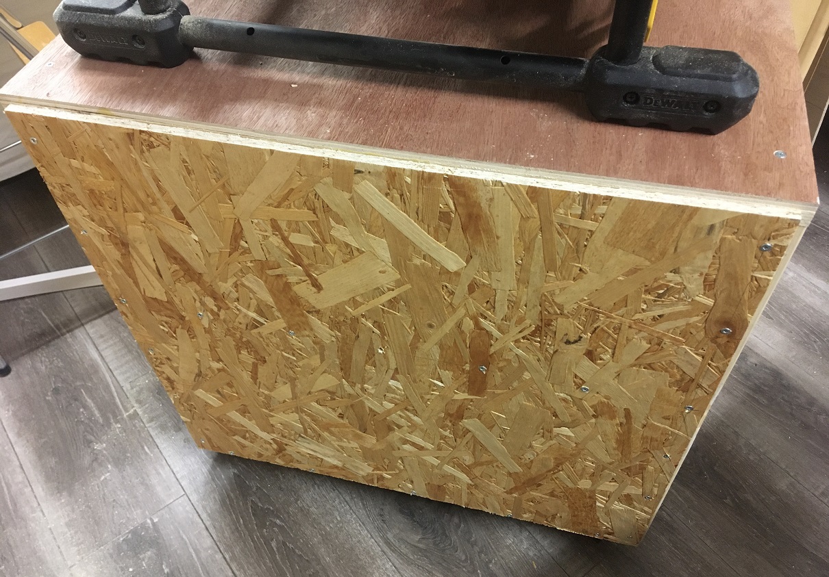 Päälilevy kahdesta liimatusta palasta jotta kestää sahan painoa. |
